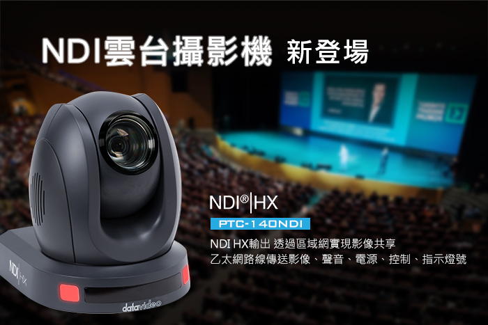 Datavideo 宣佈發表PTC-140NDI 雲台攝影機,該款攝影機也是Datavideo 旗下首款應用NDI 技術的攝影機。PTC-140 NDI 雲台攝影機採用NDI® | HX 技術,可同時以NDI、3G-SDI以及HDMI 輸出1080p 60訊號,藉由NDI 技術,使得PTC-140 NDI 雲台攝影機可以透過IP網路自動偵測與連接NDI 影像設備。