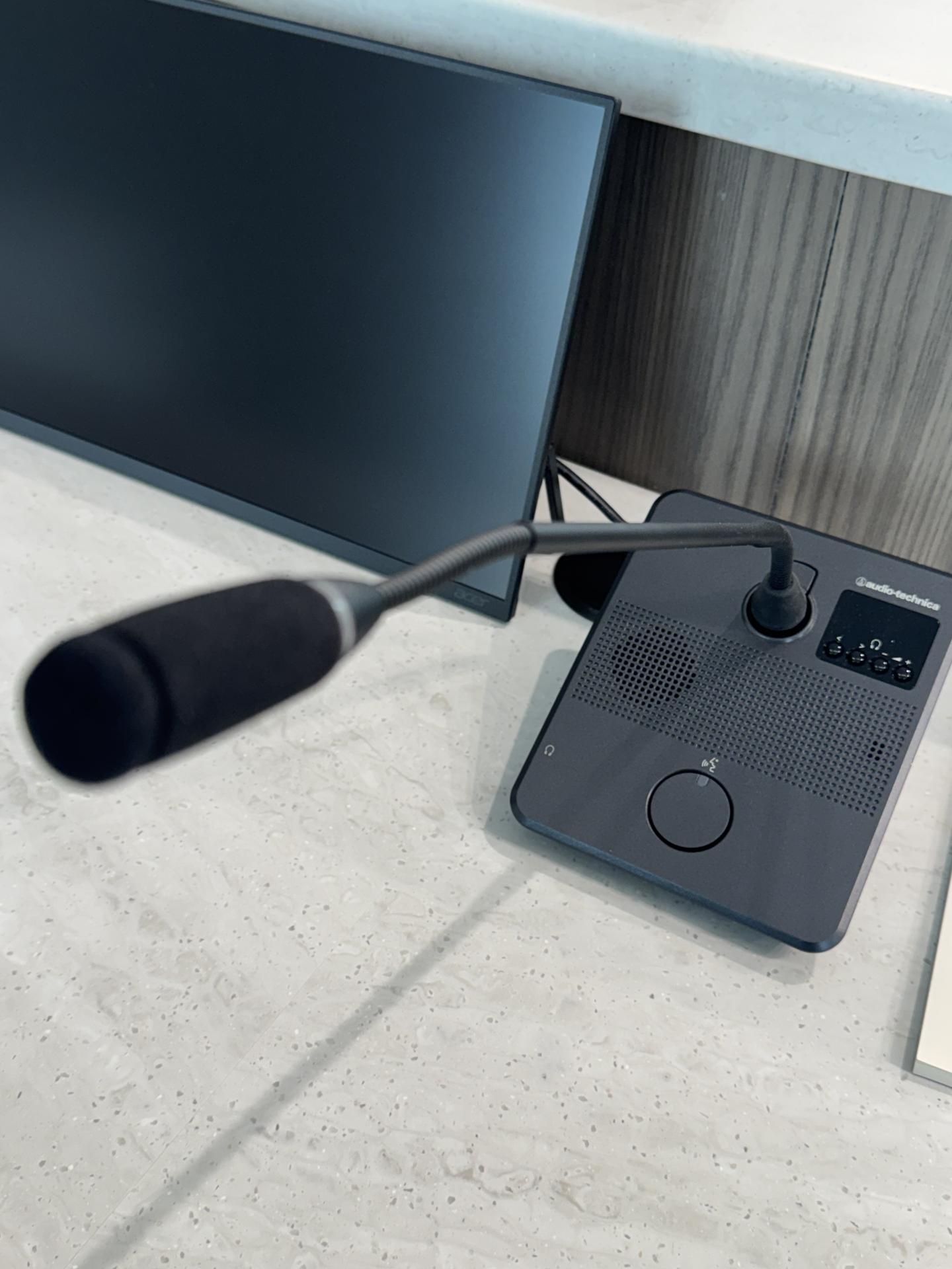 The VoiceTRX100 integrates with an Audio Technica (ATUC-50) discussion microphone system, enabling seamless voice-activated camera switching. As council members speak, the system automatically selects the appropriate camera, eliminating the need for a dedicated camera operator.
